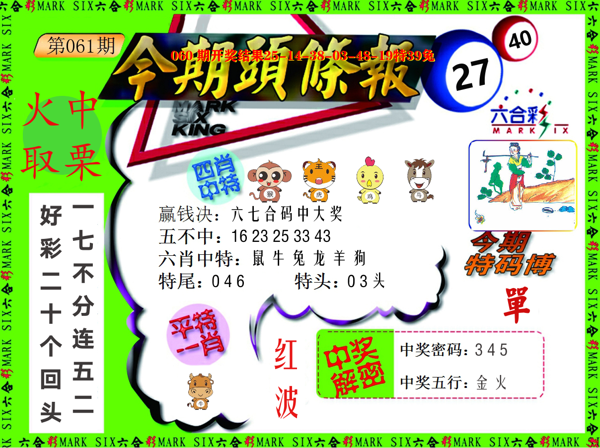 060期五肖【兔鸡龙虎猴】开 39龙 准